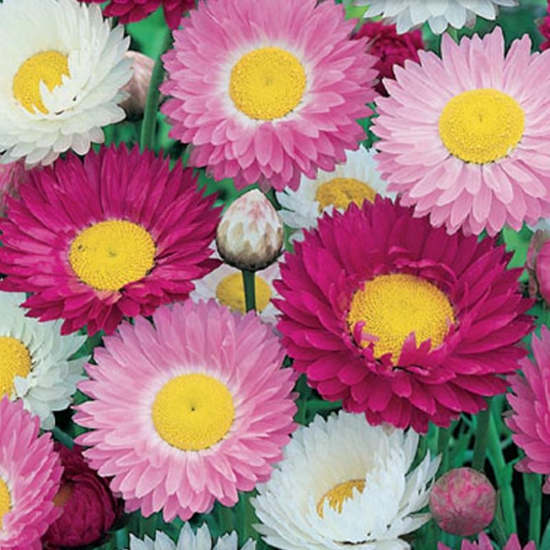 Семена акроклинума порадуют тех, кто любит украшать свой дом букетами, независимо от времени года. Для этого в солнечный день пышные соцветия, напоминающие маргаритки, срезают и сушат, подвесив за стебель. Подготовленные таким образом цветы остаются в неизменном виде на протяжении нескольких лет. Приобретая набор «Смесь окрасок», вы получаете возможность вырастить рассаду акроклинума с цветами различных расцветок: