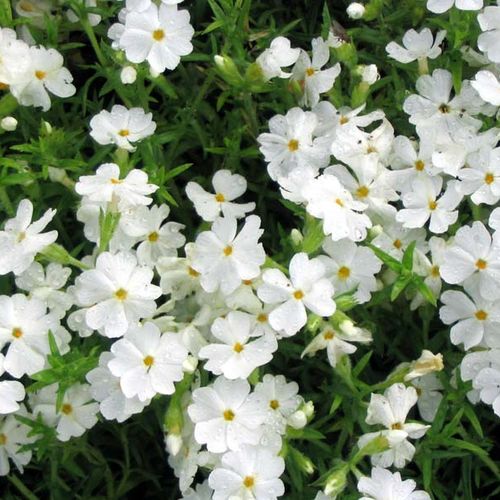 Саженцы флокса шиловидного Маичне (Phlox subulata Maischnee) – многолетний быстрорастущий сорт. Зелени на подушковидных кустах практически не видно из-за обильного цветения.