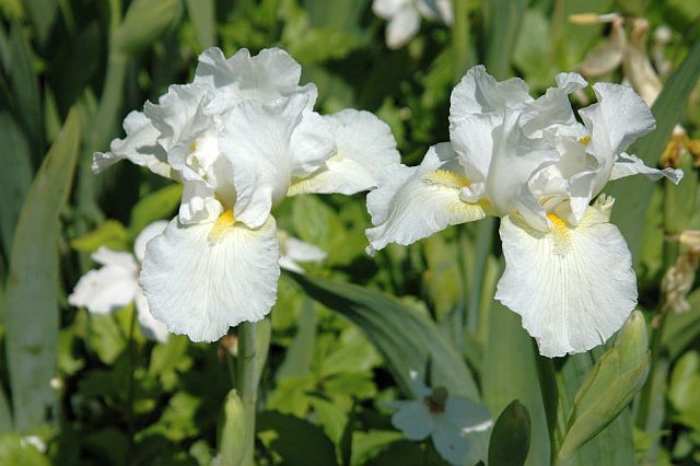 Саженцы и рассада Ириса бородатого Авенель (Iris) — это невысокий сорт (до 35 см) со снежно-белыми цветами. Он хорошо подойдет для оформления клумб и дорожек, часто используется при создании живой изгороди. Уход за ним прост — благодаря высокой устойчивости к засухам он не нуждается в ежедневном поливе даже в жару.