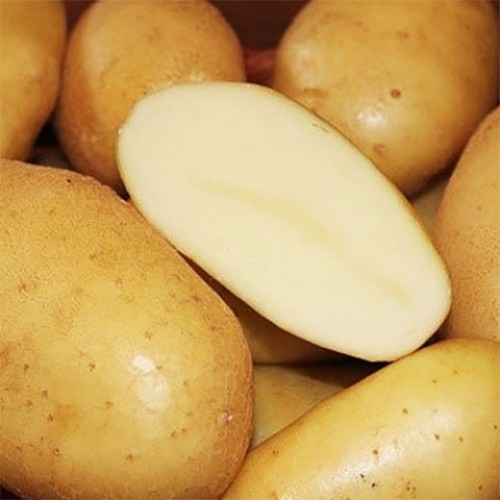 Картофель семенной «Крепыш» подходит для выращивания молодых корнеплодов и для зимнего хранения. Кусты культура формирует полупрямостоячие со средними по размеру листами. Сорт ранний. Начинать выкапывать урожай можно уже на 45 день после появления всходов. Клубни овальной формы, покрыты гладкой кожурой желтого цвета, под которой скрывается кремовая мякоть. Она обладает хорошим вкусом. Вес корнеплодов варьируется от 78 до 105 граммов. С одной сотки можно собрать от 140 до 240 кг картофеля «Крепыш».
