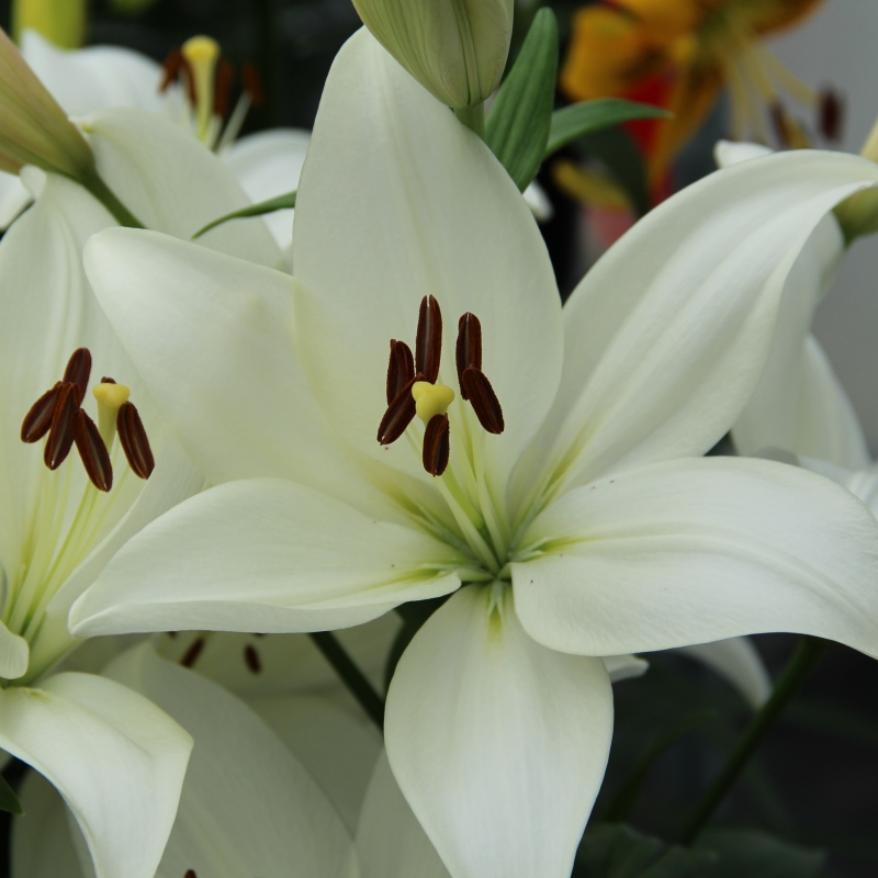 Саженцы и рассада Лилии ЛА-Гибрид Брайт Даймонд (Lilium) окажутся настоящим бриллиантом в ожерелье вашего цветника. Впрочем, даже название этого голландского гибрида можно перевести как «Яркий алмаз». Среди своих собратьев разновидность отличается удивительно чистым, белым цветом лепестков, на фоне которых выделяются крупные чёрные пыльники.