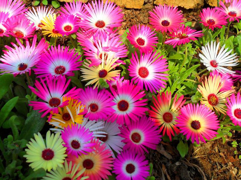 Рассаду мезембриантемума можно использовать для декорирования альпийских горок и рокариев, а также для наполнения бордюров и клумб. «Искорки» - это цветы разнообразных оттенков: