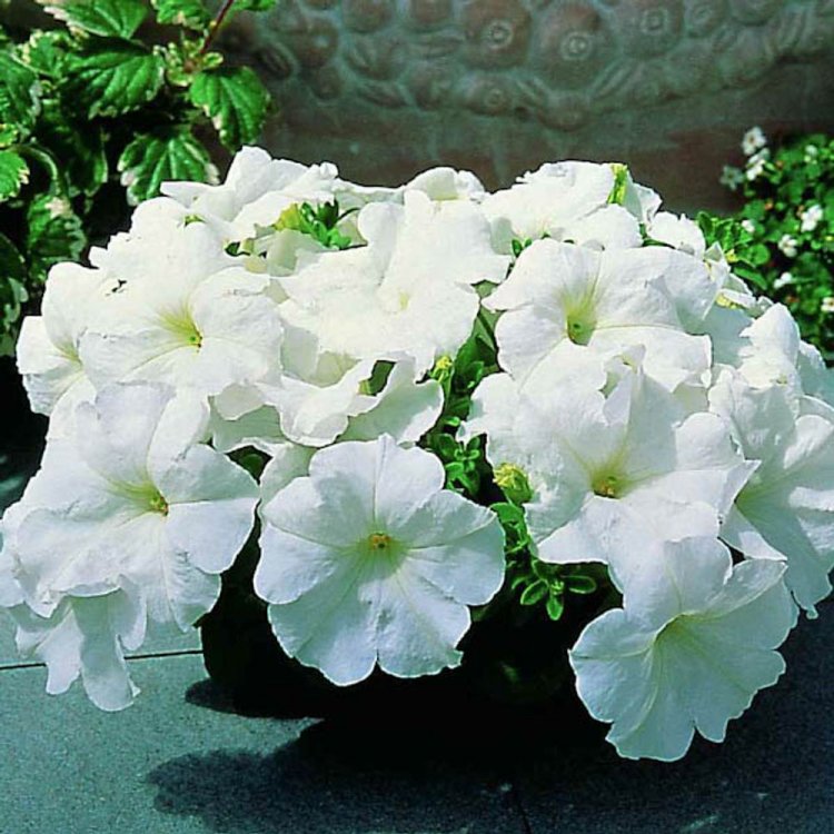 Петуния грандифлора призм вайт - это волшебное растение, которое привнесет нотки свежести и изысканности в ваш сад. Ее стебель прочный и изящный, достигает высоты 25-35 см, а цветки белого оттенка словно сверкают под лучами солнца. Листья петунии грандифлора призм вайт имеют форму, напоминающую сердце, что придает растению особый шарм.