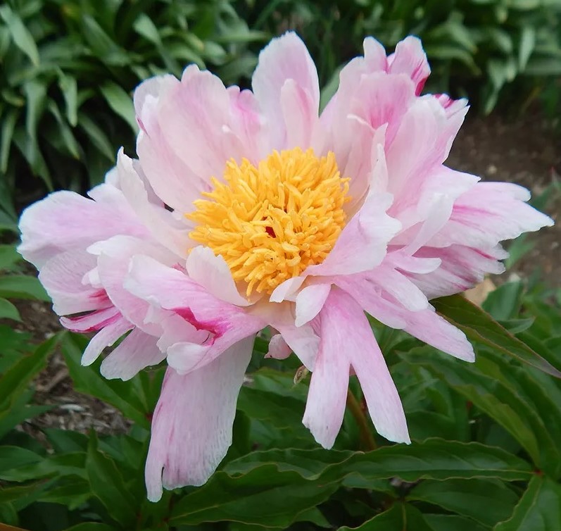 Нежный воздушный Pink Luau (Пинк Луау) излучает жизнерадостность. Его поразительные полумахровые цветы, состоящие из розовых и белых лепестков с малиновыми прожилками расположенных в форме ромашки, окружающих солнечно-желтые сердцевины. Даже его бутоны игриво полосатые. Этот пион обладает крепкими стеблями и восхитительным ароматом. Характерные особенности растения: