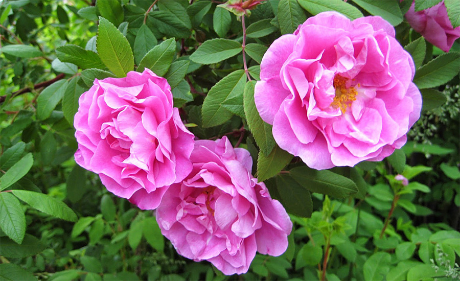 Саженцы розы парковой Therese Bugnet отлично растут на солнечных и частично затененных участках с плодородной, увлажненной, нейтральной почвой. Сорт неприхотлив, отличается высокой зимостойкостью и не требует укрытия даже в самые суровые зимы. Куст мощный, высотой до 2 метров и шириной до 120 сантиметров, с многочисленными побегами, которые почти без шипов, но густооблиственные. Цветение продолжается с июня до поздней осени. Цветки диаметром 7-8 см, нежно-розового окраса, полумахровые, с сильным ароматом, одиночные или собраны в кистях по 3-5 штук.