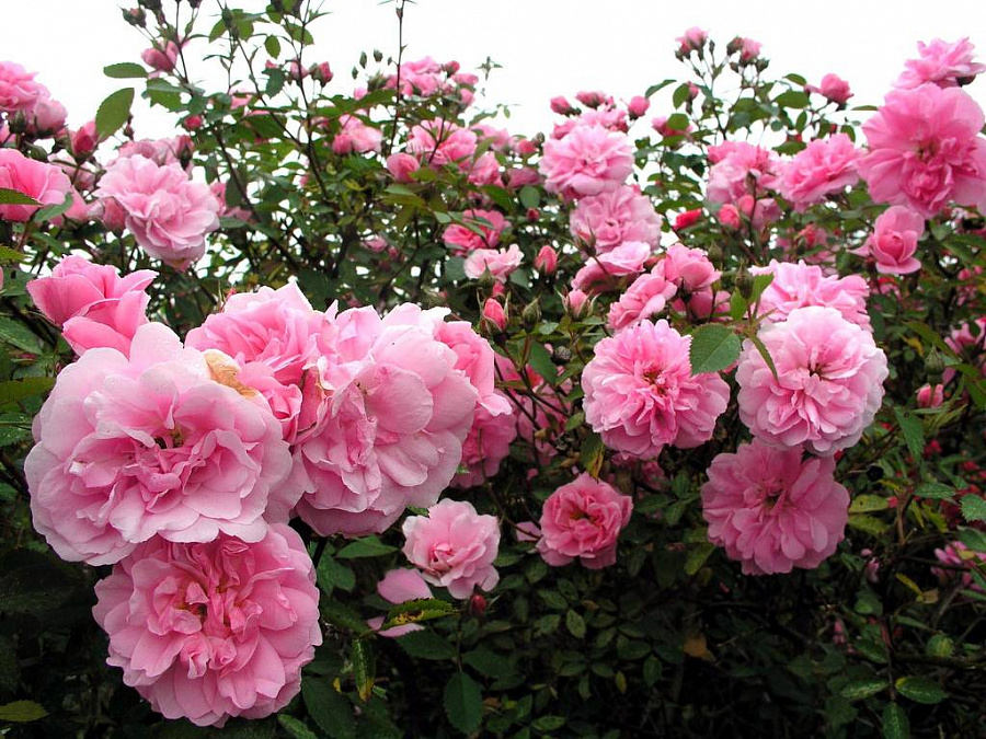 Окраска цветка : розовый, махровый, высота 2-2,5 м